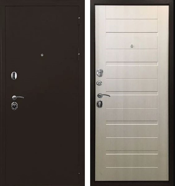 цельногнутая конструкция полотна и коробки, дверная коробка открытого типа. Толщина металла на полотне и коробе двери с полимерным покрытием 1,2мм.